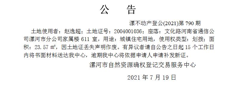 漯不动产登公(2021)第790期