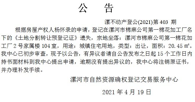 漯不动产登公(2021)第403期