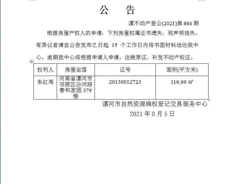 漯不动产登公(2021)第864期