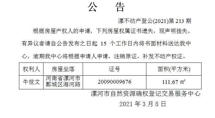 漯不动产登公(2021)第213期